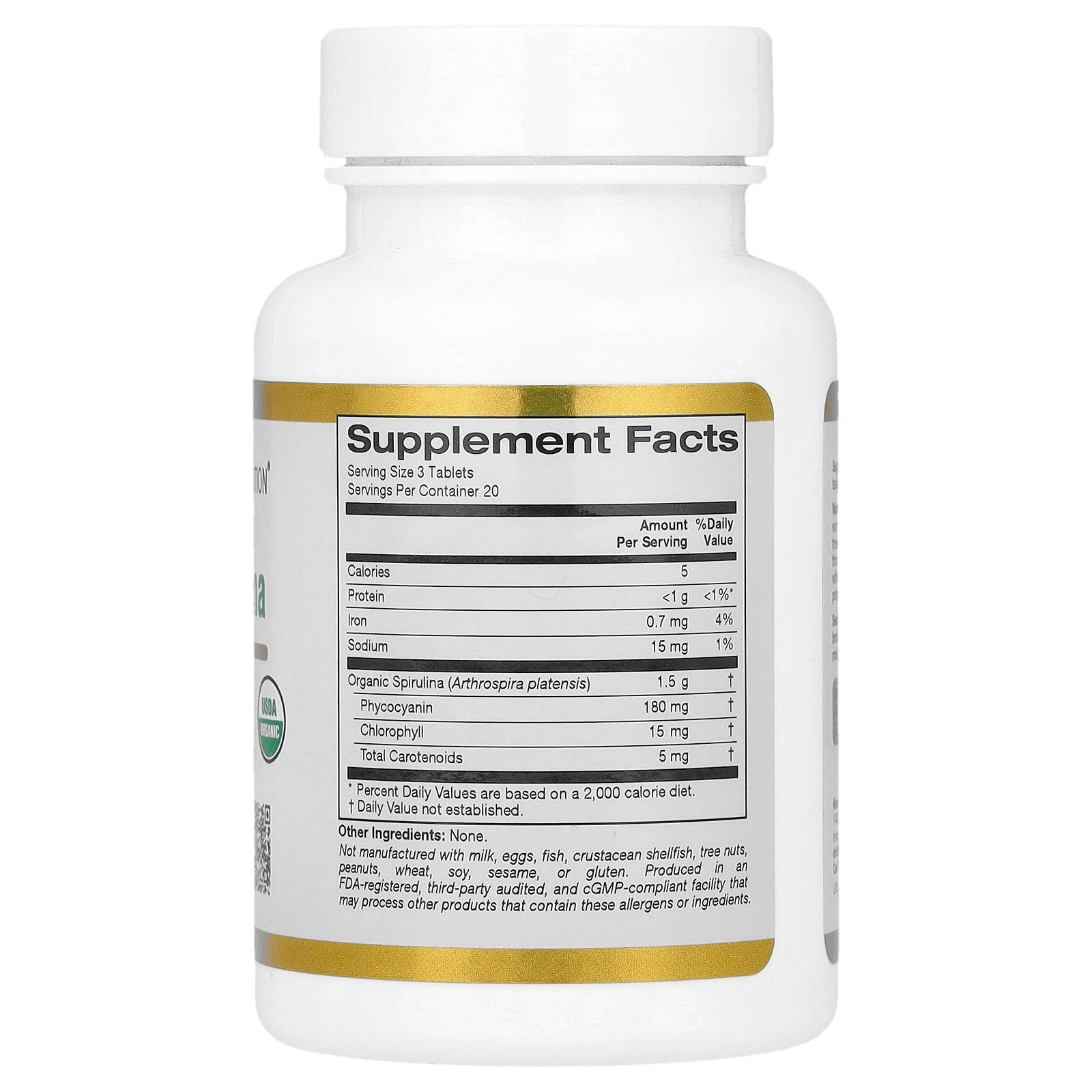 Organic Spirulina with Phycocyanin, and Chlorophyll, 60 Tablets (500 mg per Tablet)
